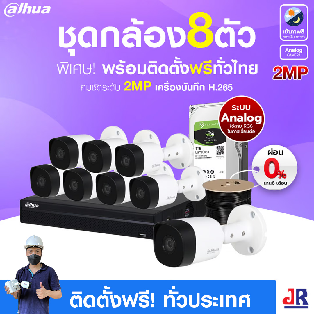 “ชุดกล้องวงจรปิดพร้อมติดตั้ง Dahua ระบบ Analog" จำนวน 8 ตัว ความคมชัด 2MP
