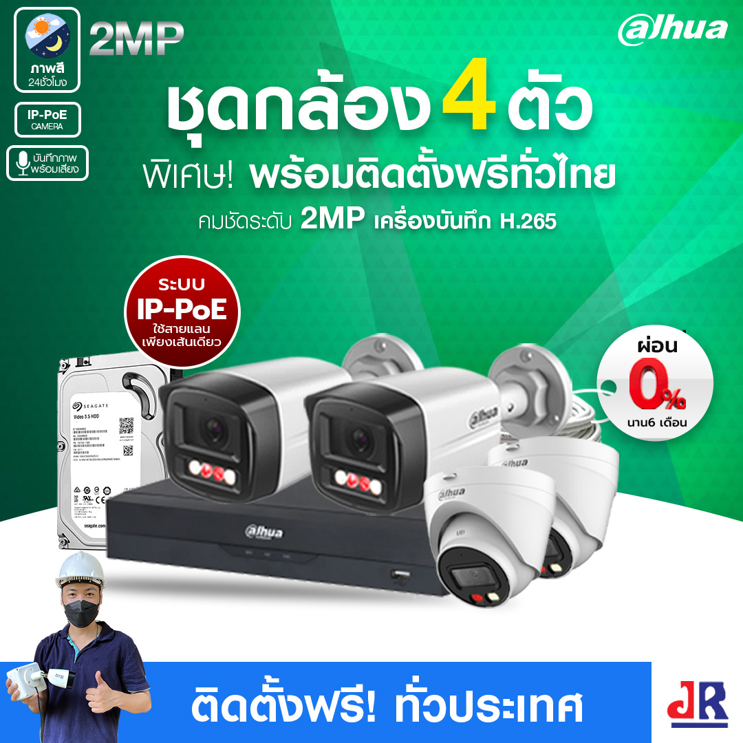 ชุดกล้องวงจรปิดพร้อมติดตั้ง DAHUA ระบบ IP-PoE จำนวน 4 ตัว