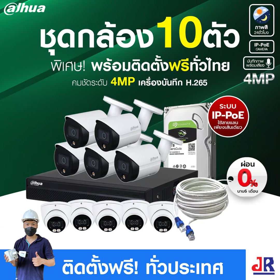 ชุดกล้องวงจรปิดพร้อมติดตั้ง DAHUA ระบบ IP-PoE จำนวน 10 ตัว