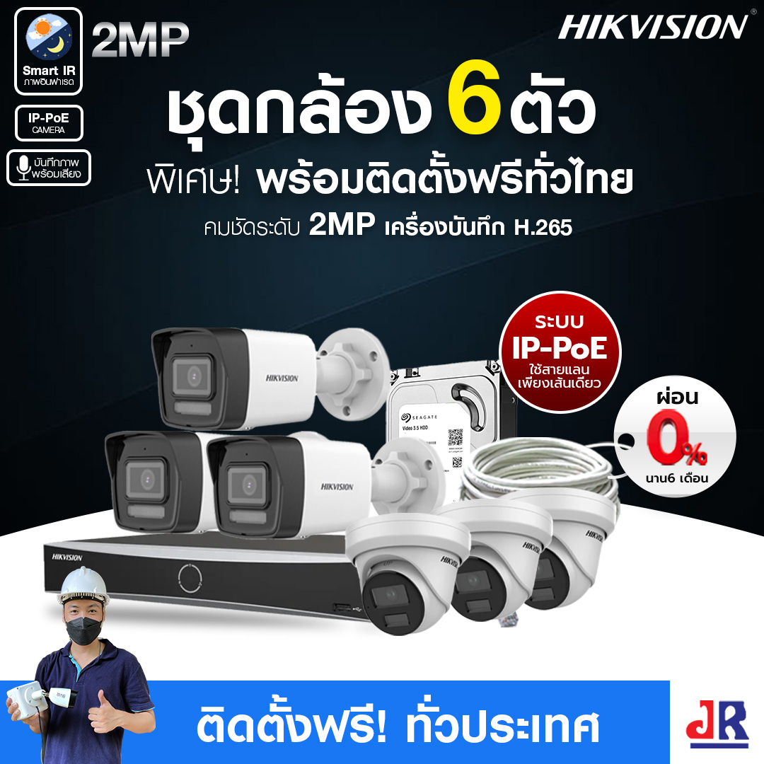 ชุดกล้องวงจรปิดพร้อมติดตั้ง HIKVISION ระบบ IP-PoE จำนวน 6 ตัว