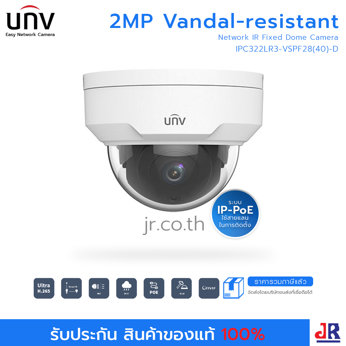 กล้องวงจรปิดทรงโดม ความคมชัด 2 MP รุ่น IPC322LR3-VSPF28(40)-D : Uniview (UNV)