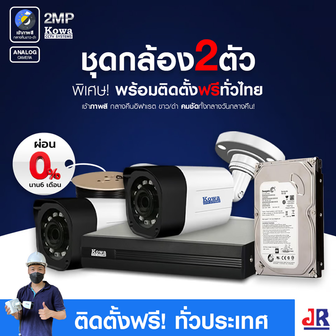 ชุดกล้องวงจรปิดพร้อมติดตั้ง KOWA ระบบ Analog จำนวน 2 ตัว ความคมชัด 2MP สามารถดูออนไลน์ผ่าน APP ในมือถือ ตลอด 24 ชั่วโมง