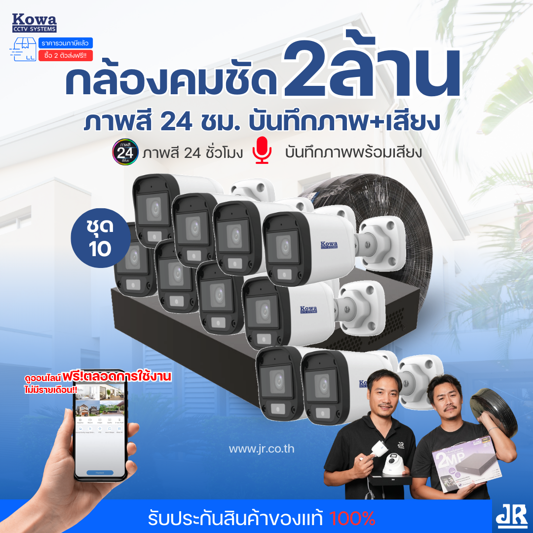 ชุดกล้องวงจรปิดพร้อมติดตั้ง KOWA ระบบ Analog จำนวน 10 ตัว ความคมชัด 2MP ภาพสี 24 ชม. บันทึกภาพพร้อมเสียง