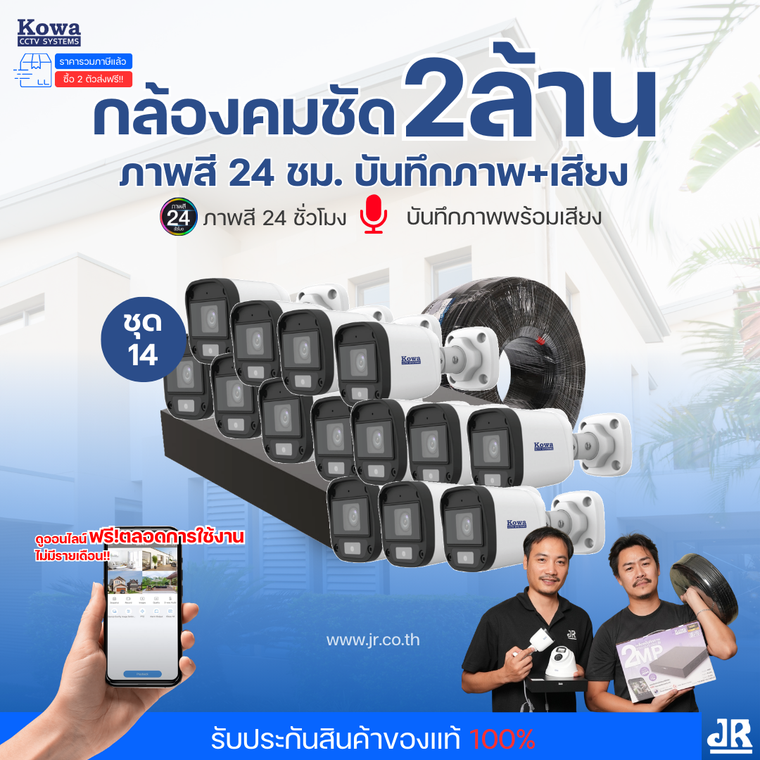 ชุดกล้องวงจรปิดพร้อมติดตั้ง KOWA ระบบ Analog จำนวน 14 ตัว ความคมชัด 2MP ภาพสี 24 ชม. บันทึกภาพพร้อมเสียง