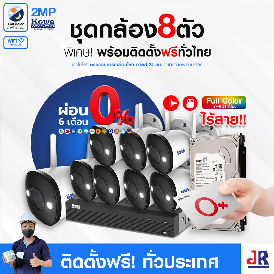 “กล้องพร้อมติดตั้ง KOWA ชุด 8 ตัว ระบบ WIFI คมชัด 2 ล้านพิกเซล” ภาพสี 24 ชม. บันทึกภาพพร้อมเสียง