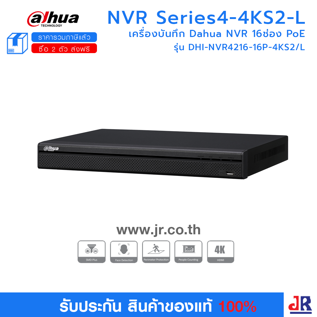 เครื่องบันทึก Dahua NVR4216-16P-4KS2/L (16ช่อง + 16PoE)