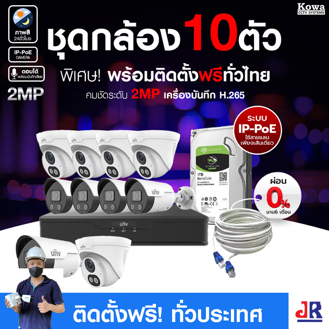 ชุดกล้องวงจรปิดพร้อมติดตั้ง UNV ระบบIP-PoE จำนวน 10 ตัว