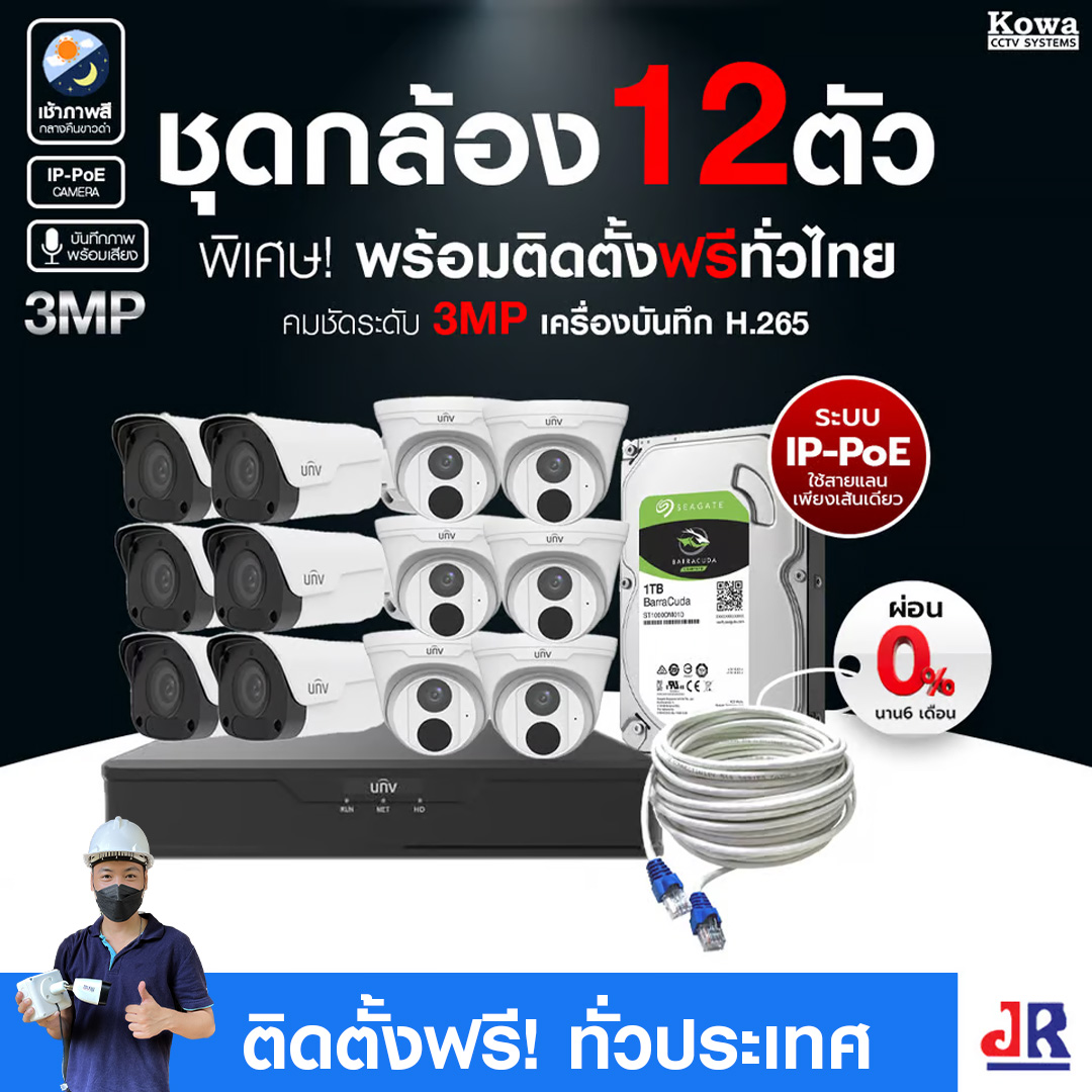 ชุดกล้องวงจรปิดพร้อมติดตั้ง UNV ระบบIP-PoE จำนวน 12 ตัว