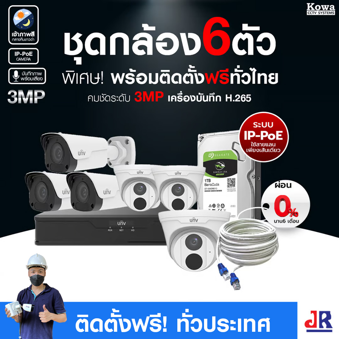 ชุดกล้องวงจรปิดพร้อมติดตั้ง UNV ระบบIP-PoE จำนวน 6 ตัว