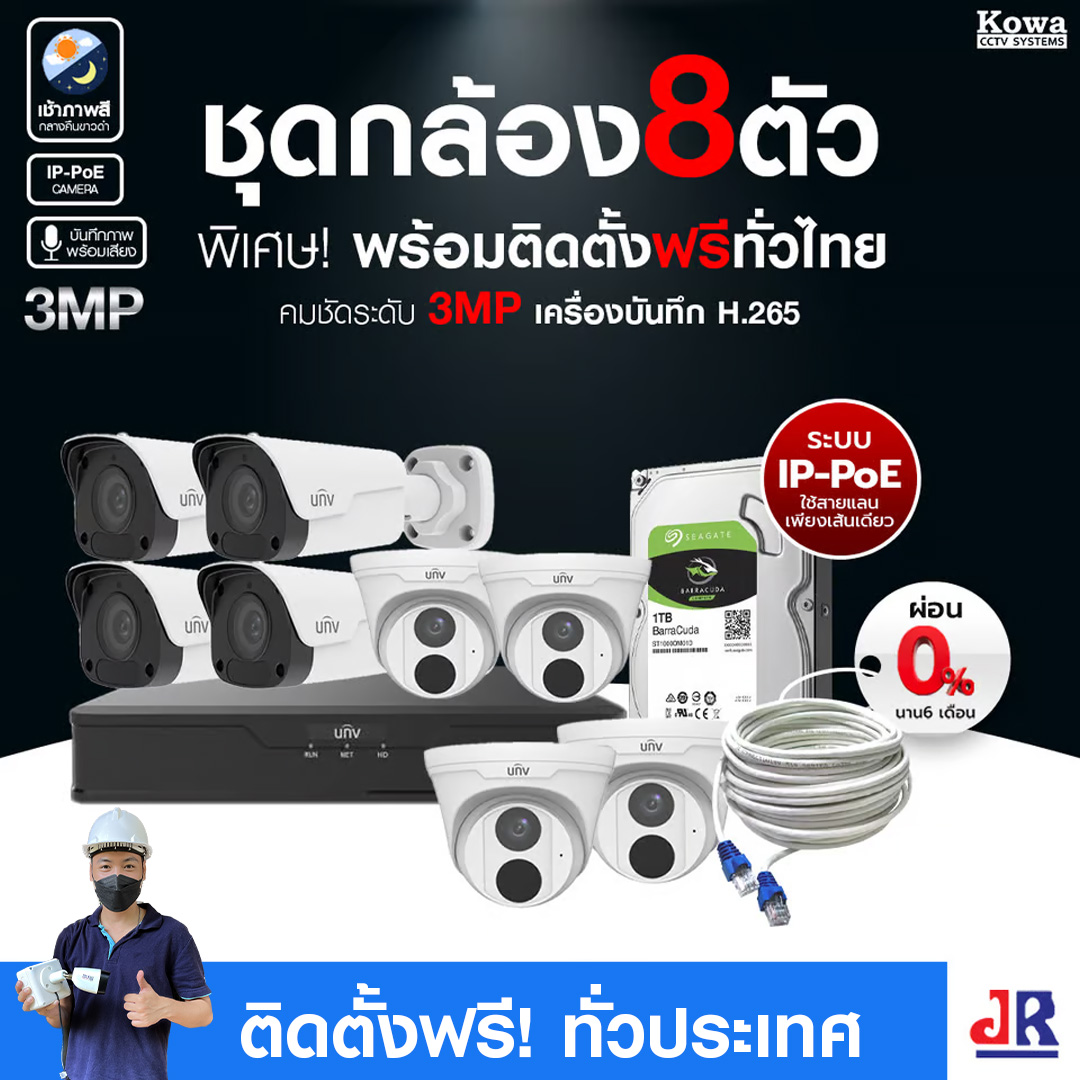 ชุดกล้องวงจรปิดพร้อมติดตั้ง UNV ระบบIP-PoE จำนวน 8 ตัว