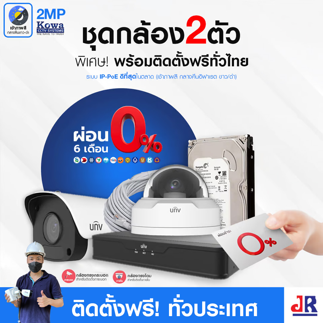 ชุดกล้องวงจรปิดพร้อมติดตั้ง UNV ระบบIP-PoE จำนวน 2 ตัว