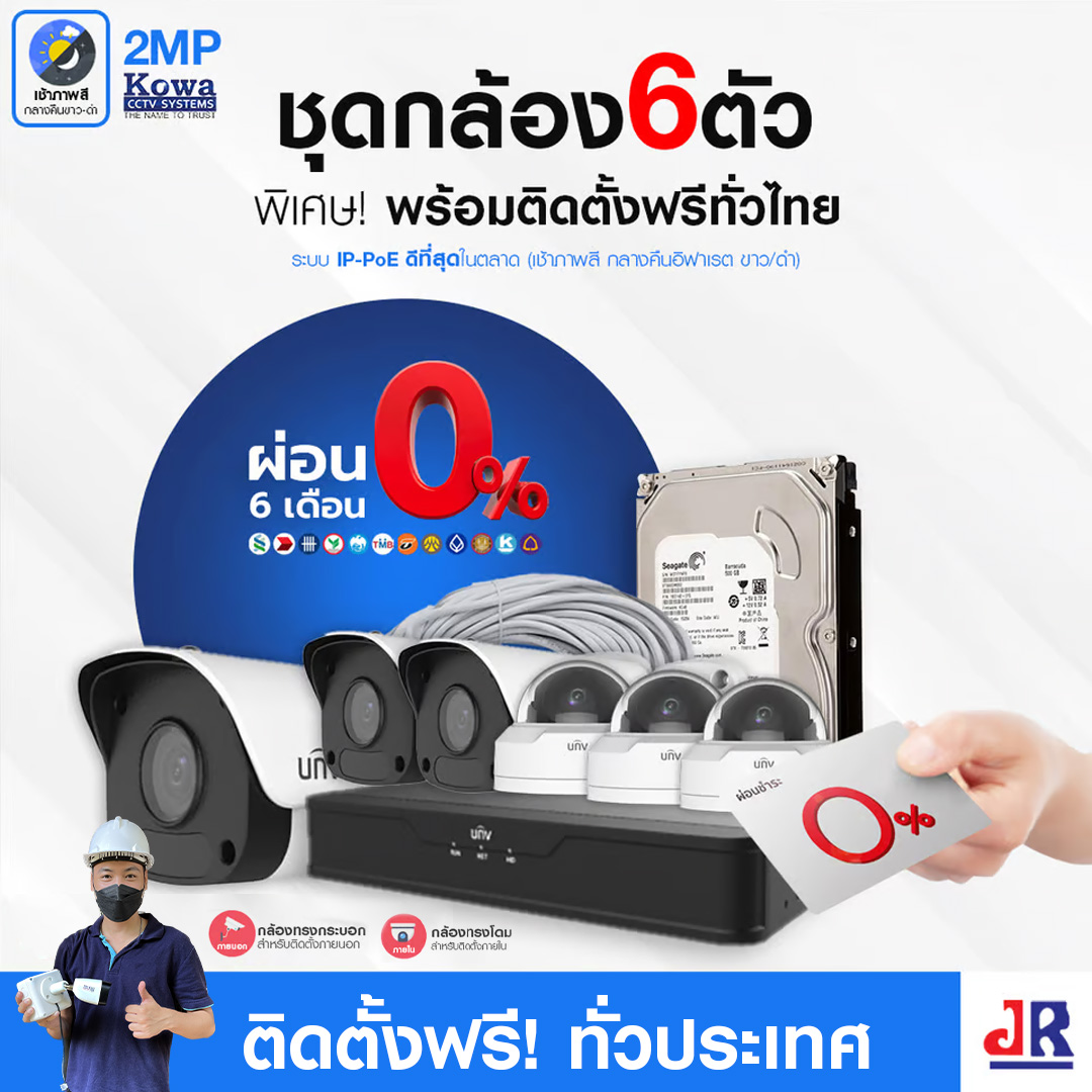 ชุดกล้องวงจรปิดพร้อมติดตั้ง UNV ระบบIP-PoE จำนวน 6 ตัว