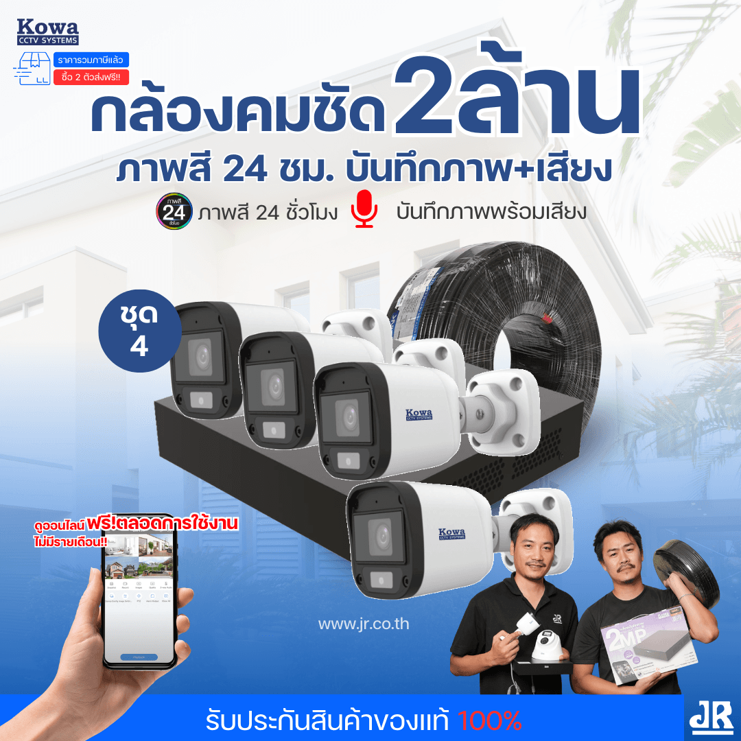 ชุดกล้องวงจรปิดพร้อมติดตั้ง KOWA ระบบ Analog จำนวน 4 ตัว ความคมชัด 2MP ภาพสี 24 ชม. บันทึกภาพพร้อมเสียง